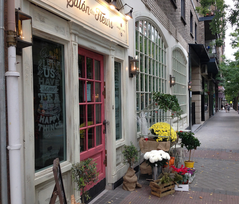 The interior is lavishly decorated with flowers in full bloom and French antique style furniture and fittings. There is comfortable seating downstairs, surrounded by quirky hanging birdcages and fairy lights in the large windows, while a beautifully ornate iron staircase gives access to an upstairs balcony housing shelves with delightful curios for sale.